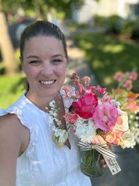 Hi there! My name is Rachel, and I love all things flowers. I grew up in England with a Mum who was an amazing gardener but I was always intimidated to grow anything until the last few years. I rediscovered my roots and now grow English country garden inspired flowers in my back garden in Gig Harbor, WA. I'm drawn to whimsical, delicate, fragrant and romantic blooms, and love to create arrangements that bring the recipient the same joy as I find making it!